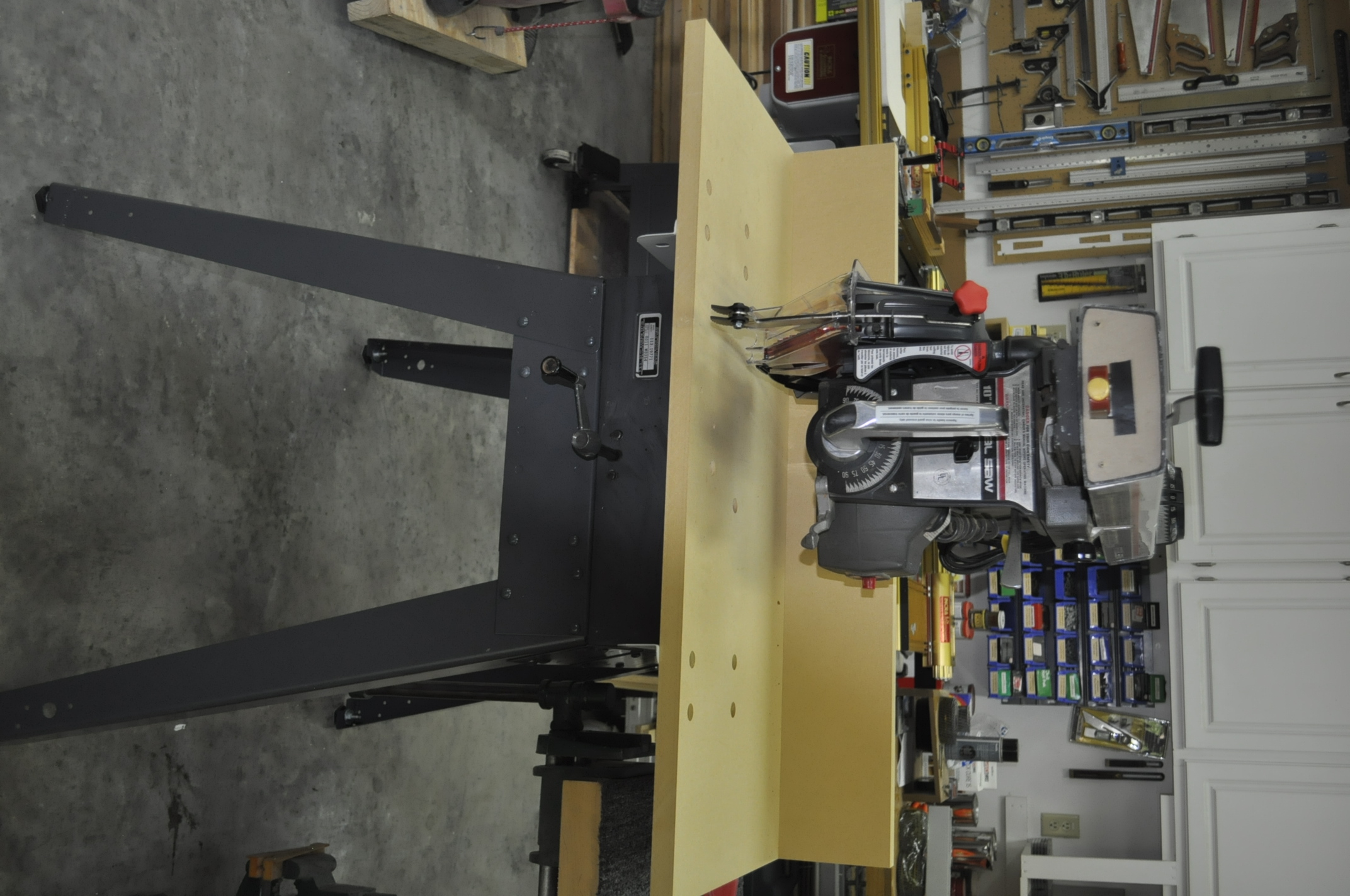 Craftsman Radial Arm Saw Before Restoration Fast forward 10 years and I finally got the saw and the safety upgrade package out of the attic and into my shop for refurbishment. First job was cleaning up the saw from years of use and neglect. The steel rod that moves the saw up and down had some rust but it came off very nicely and the cylinder was not pitted. The next big issue to tackle was that the arm would not rotate out of the 90 degree position and that led me into the inner workings of how the saw works. It was a real learning curve. After opening up the inner workings of the saw I saw it was full of saw dust and resin pitch from cutting lumber. The reason the arm would not rotate was due to the fact that the saw dust and resin had hardened over time into the consistency of cement! Took a lot of scraping and polishing but the effort paid off and the arm now rotates freely in both directions. After many trips to the hardware store for nuts, bolts, paint and other hardware I had the saw and saw stand back in prime shape. Now for the safety upgrade. The upgrade kit came with a new instruction manual of 47 pages, an addendum to the new instruction manual in many languages and with the 43 page manual that I had already down loaded I was ready to start. The problem was that the information was not totally clear on how the upgrade was to proceed and I did not know that you were supposed to save all of the hardware off of the old table saw top (mine was missing when I was given the saw). The other part of the problem was that this upgrade path fit 11 different model numbers so there were lots of extra holes in the table saw top that were irrelevant to my saw upgrade. Confused I went to my old standby, You Tube. Sure enough there was a 55 minute video of this gentleman describing the upgrade process on his saw. This video really helped and I watched it many times to get clarification when I became stuck on the upgrade process. The new top was installed, leveled left to right and front to back. It was time to move on to the fancy new blade guard system. After another learning curve on the blade guard housing I had it on but there was a big problem. The motor shaft which holds the blade was inaccessible because it was now under the blade guard. After many hours of trying different things to do with the blade guard I went back to the video and watched this operation all over again. When this gentleman explained the guard mounting he did not have a saw blade mounted to his saw and one of the steps he did in the video got in my way. Not to fear, I went back to You Tube to look for another video about this problem but found no answers to my problem. Google was my next choice but Google struck out also so it was back to the shop and start the learning all over again. I went back to the manual to take another look at the blade guard installation and something caught my attention about how this was to be accomplished. It turns out that the addendum for installing the blade guard is different from the new instruction manual!!!! For this to work you first install the saw blade and then slip the new blade guard over the saw blade! The only problem was the piece of plastic that I had installed earlier from watching the You Tube video made this impossible. After looking at this for a while I discovered that the plastic piece could be taken out, the guard slipped over the blade and then reinstalled. Success. After getting the new blade guard system installed the rest of the safety upgrade went very smoothly and now it was time for a drink or two.
