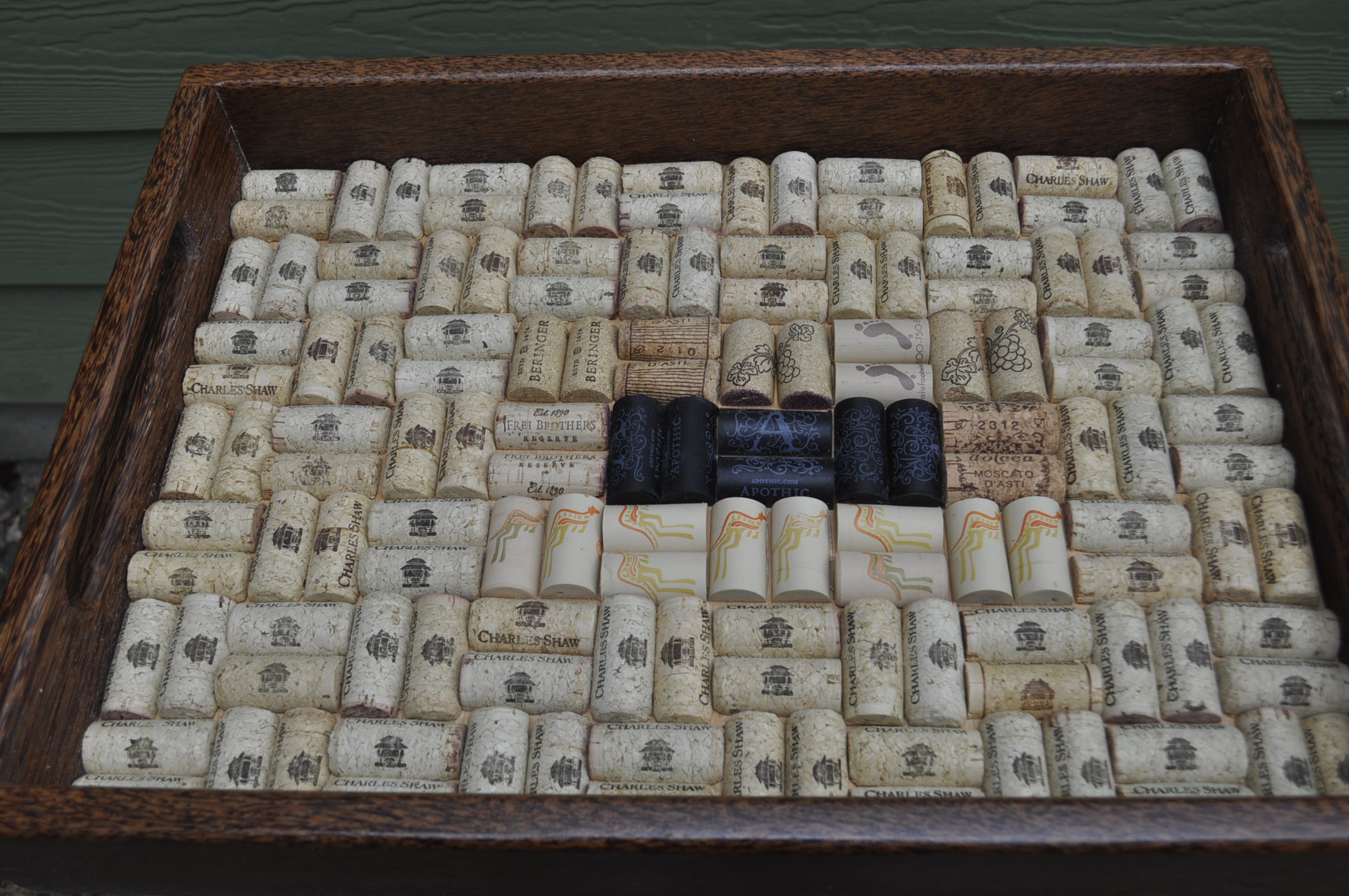 Project 21-12 is a completely original design and execution of a scroll and quill inlay on a maple board 11 x 15 x 7/8. There are seven inlays in four different woods. This is a router template project similar to the Multi-Layer Inlay System, but I made the templates for this one. The next project comes from Gary Stephens. If these projects look familiar you have a good memory. Back in January of this year I featured two of these serving trays made out of Red and Black Palm "wood". At the time I had cut out the material for four of these serving trays but I wanted to finish two of these trays with a high gloss spray lacquer finish. It was the winter and my heater was running and I did not want to stink up the shop with lacquer finish or have the potential for a flash explosion so I set two of the serving trays aside until warmer weather. I finally got around to getting back to the final two serving trays this month and finishing them the way I wanted without blowing up my shop. One of the nice pleasures of making these serving trays are the corks. It takes 70 corks to cover the the bottom of the serving tray. 70 bottles of wine on the wall .... Working with the palm wood was different from normal hardwoods or softwoods. When cutting the finger joints on the table saw my sweat shirt that I was wearing looked like a porcupine sprayed it with hundreds of tiny splinters. When routing the curved edges of the serving tray it sounded like WWW III as the "wood" came off in long splinters and I thought it was going to destroy the wood. After turning off the router I found that the finish on the "wood" was very smooth but full of small splinters. Red Palm Serving Tray And Cork Arrangement Detail Black Palm Serving Tray |