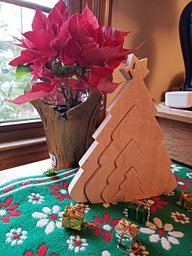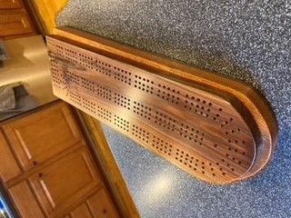 Guild ProjectsThese next projects come from our president, Fran Foster. Cribbage is becoming more popular and I decided to make a board for two of my daughters’ families. I used walnut and mahogany for the different parts and as you can see, they were made with what could be considered “scraps” if there is any such thing when you talk about those two woods. The holes were drilled on a drill press following a pattern that was downloaded from the Internet. A much slower process than using a CNC machine, but only took an hour per board!